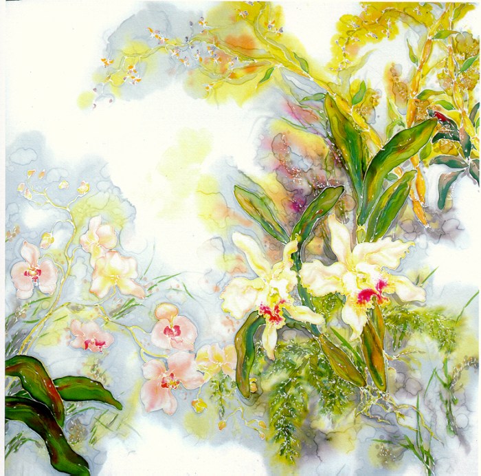 Orchids Field - Painting on silk
